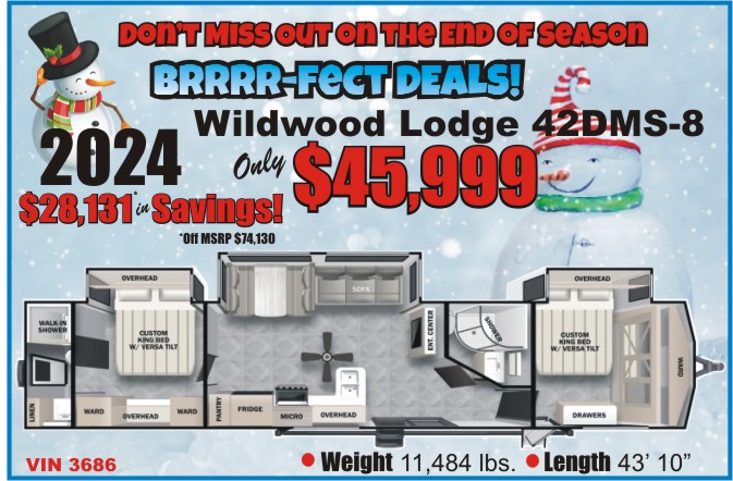HO HO HOLIDAY DEALS! ALL NEW 2024! WOW – 38% OFF MSRP! DRASTICALLY REDUCED PRICED: $45,999 Was: $50,889 $28,131 in Savings Off MSRP of $74,130 Check it out then give us a call of stop in and take a look… we promise you won’t be disappointed!