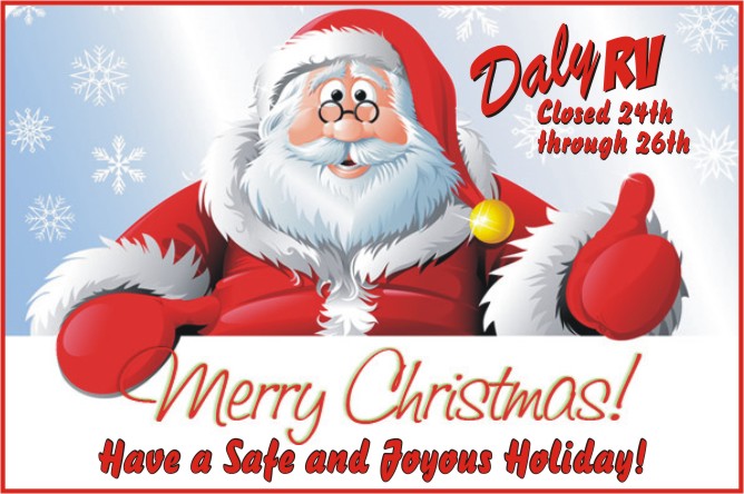 Daly RV will be closed to enjoy Christmas with family and friends from Wednesday, December 24th through Friday, December 26th… we will be open Saturday, December 27th at 8:30AM. Thank you and have a Very Merry & Joyous Christmas!