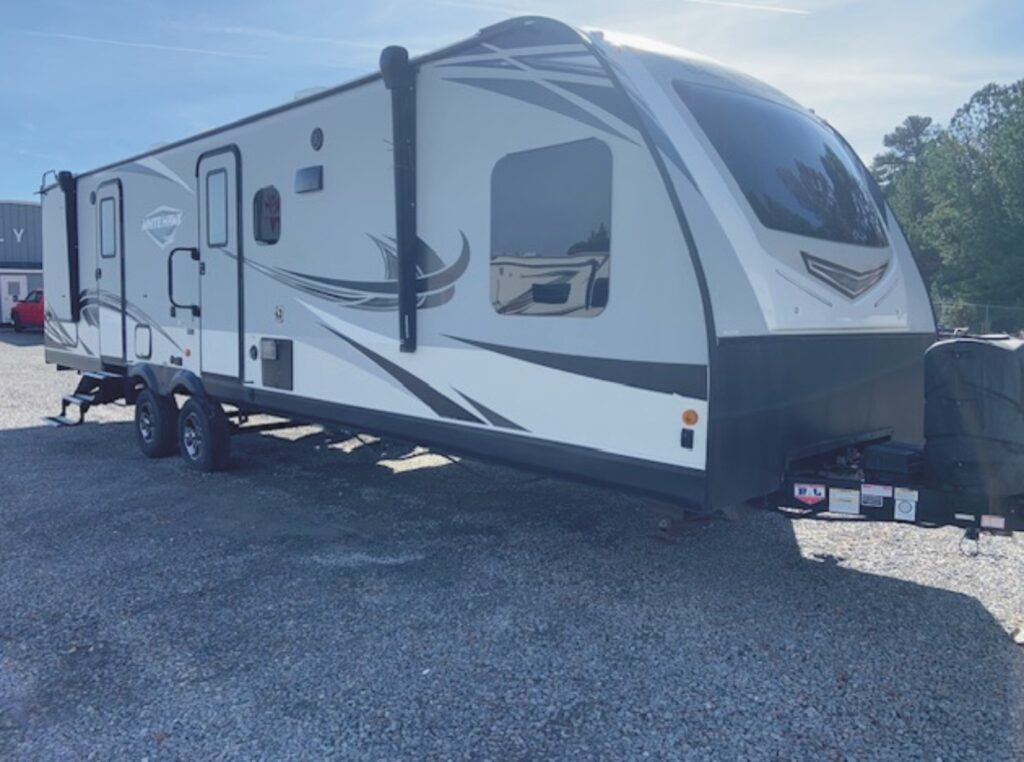 The Pre-Enjoyed 2020 Jayco White Hawk Travel Trailer Model 30FLS (VIN 0061) features dual entries; one into the main living area w/ solid-stance steps and the second into the bedroom area, L-shaped kitchen counter w/ double basin sink, U-shaped dinette, sofa sleeper, refrigerator & pantry slide-out, walk-through bathroom, and large rear bedroom area w/ lots of storage.